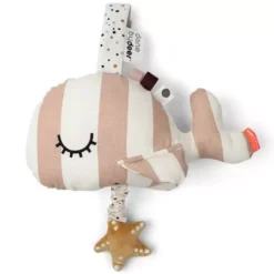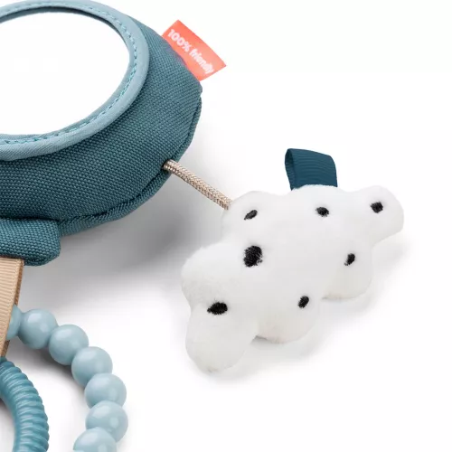Er valt vanalles te beleven met de activiteitenknuffel ‘To Go Activity Mirror Happy Clouds – Blue’ van het Deense merk Done by Deer.