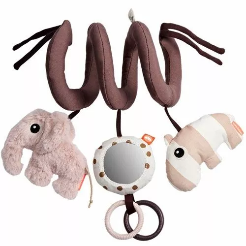 Dit babyspeelgoed is bevestigd aan een uitrekbare spiraal en kan aan uiteenlopende oppervlaktes gehangen worden: de box, kinderwagen, maxi cosi of babygym. Vermaak voor thuis of onderweg.