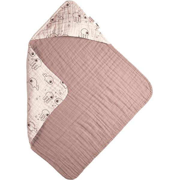 De lichte en soepele badhanddoek met capuchon vult elke basisuitrusting succesvol aan. Het wordt bij elke wasbeurt zachter en garandeert zo een aangenaam huidgevoel voor je kleine lieveling.