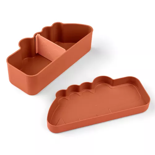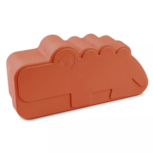 De lunchbox in de vorm van een krokodil heeft een uitneembaar plaatje waarmee de inhoud gescheiden kan worden. Het deksel is tevens te gebruiken als bord.