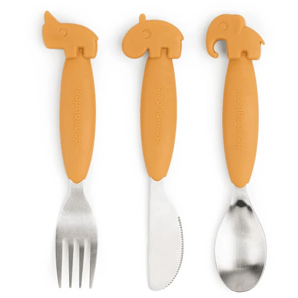 Het Ozzo mes, de Nozo vork en de Elphee lepel in mosterdgeel maken alleen eten echt leuk! De mosterdgele kleur past perfect bij de rest van de serviescollectie van Done by Deer .