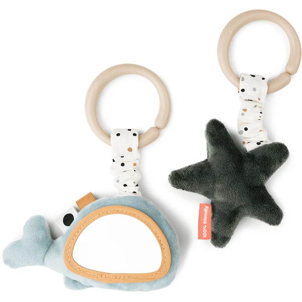 - De schattige Wally heeft een klein babyspiegeltje en de coole schelp kan rammelen