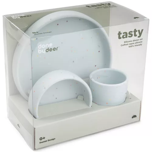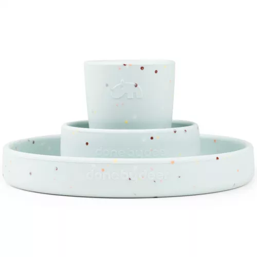Laat iedere maaltijd stralen op het servies ‘Silicone Dinner Set Confetti Blue’ van het Deense merk Done by Deer.