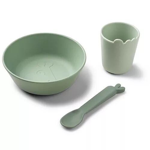 De eetset van het Deense merk Done by Deer is speciaal ontworpen voor kleine eters. Eet het kommetje helemaal leeg en ontdek Raffi op de bodem!