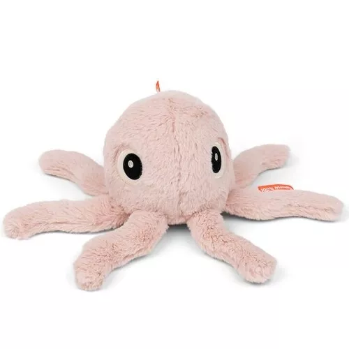 Op zijn hoofd en een van zijn tentakels heeft de knuffeloctopus een labeltje waar aan gefrummeld kan worden. Aan zijn lange armen is de knuffel bovendien makkelijk vast te pakken. Zijn lijfje is aan de onderzijde gevuld met korrels, wat grappig aanvoelt voor onderzoekende handjes.