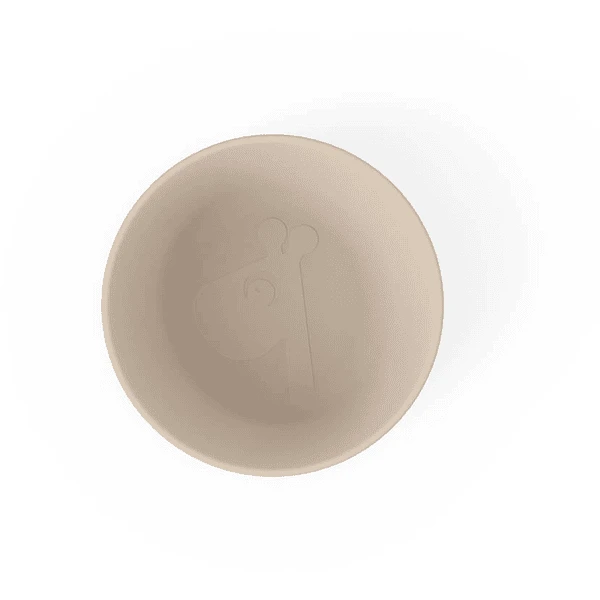 Lieve Raffi kijkt naar ons vanuit de praktische kiddish schaal in Sand . De Kiddish kom heeft een mat, zijdeachtig oppervlak en de perfecte maat voor peuters die net de wereld van het eten beginnen te verkennen.