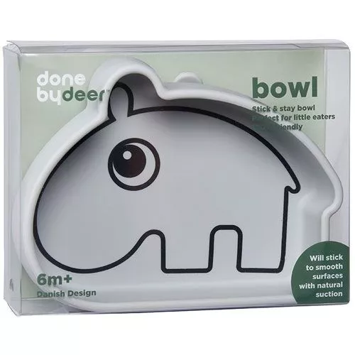 Een buigzaam, siliconen kinderkom ‘Stick & Stay Bowl’ van het Deense merk Done by Deer in de vorm van Ozzo. De onderkant werkt als een zuignap en blijft stevig op zijn plek tijdens maaltijden: ideaal voor de bewegelijke peuter!