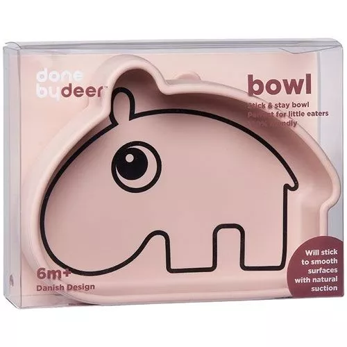 Een buigzaam, siliconen kinderkom ‘Stick & Stay Bowl’ van het Deense merk Done by Deer in de vorm van Ozzo. De onderkant werkt als een zuignap en blijft stevig op zijn plek tijdens maaltijden: ideaal voor de bewegelijke peuter!
