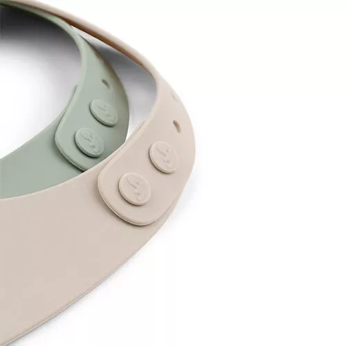 Een twee siliconen peuterslabben ‘Lalee’ van het Deense merk Done by Deer. Een slab met een afbeelding van Lalee, de ander met een cactus. De praktische slabbetjes hebben een handig voorvakje voor het morsen.